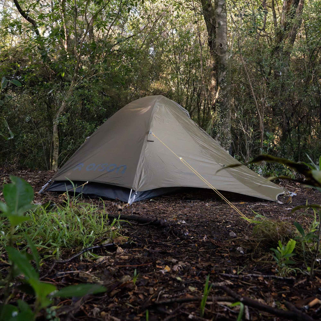 Weighing just 2kg, the Orson Ace 1 is easy to pack and transport in its compact strap carry bag. Pitching the Ace 1 is a breeze, making setup quick and simple with a key feature being the oversized vestibule, which provides plenty of space for storing your pack and gear, or for using as extra sheltered space in wet weather.