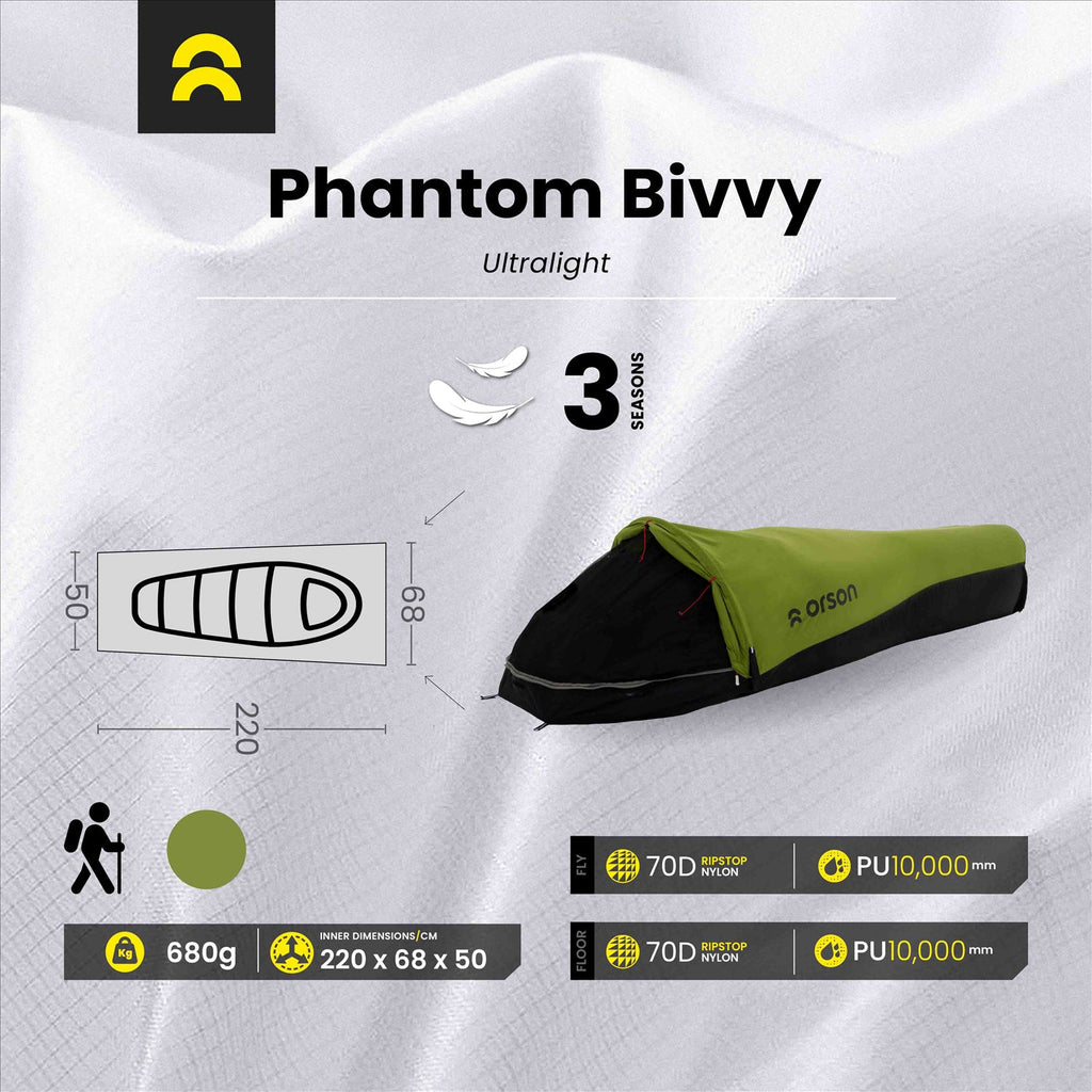 The new ultralight Orson Phantom Bivvy is lightweight, compact, and easy to set up, making it perfect for trampers, bikepackers, minimalist campers, or as a handy backup shelter.