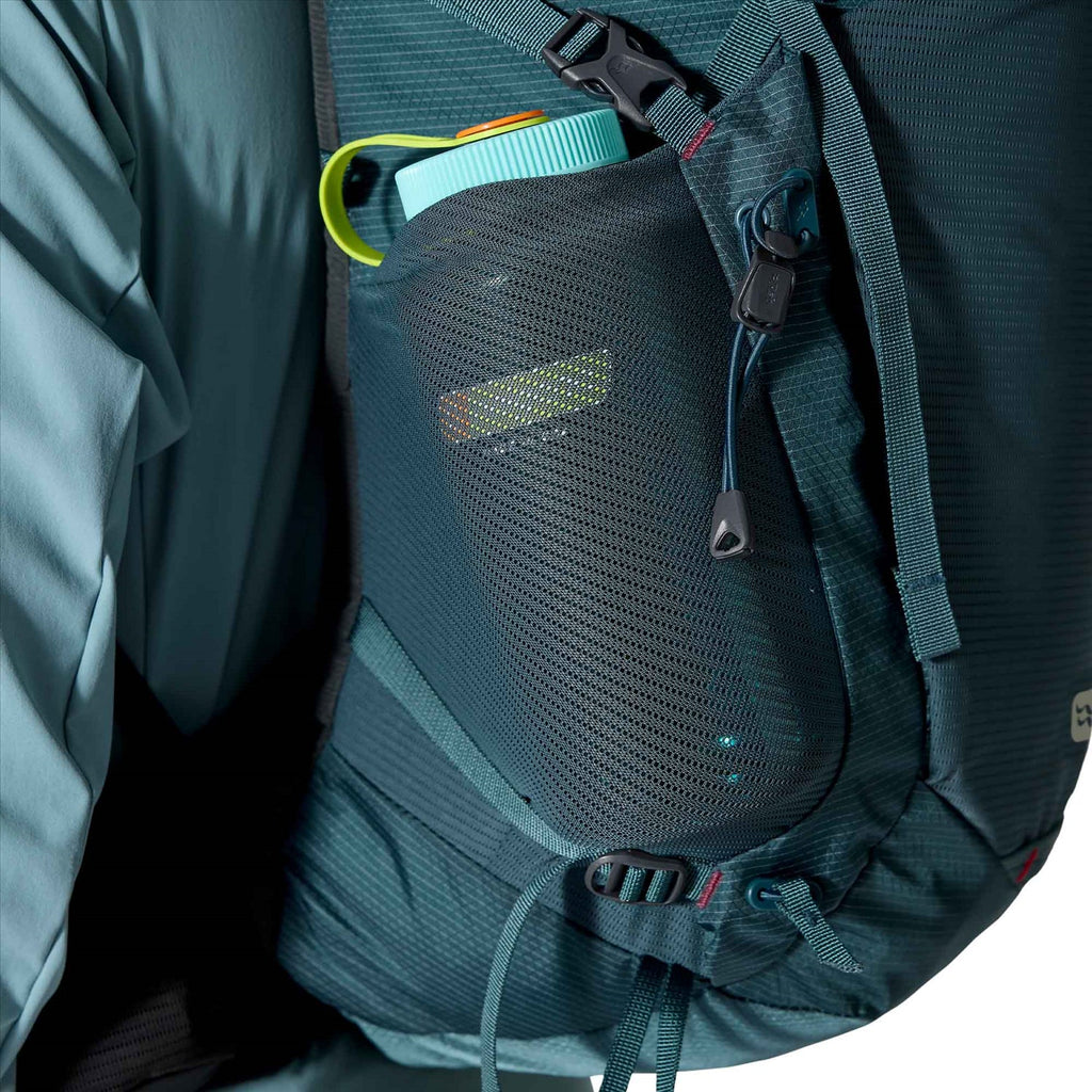 - Large stretch mesh front and side pockets, great for easy gear stash