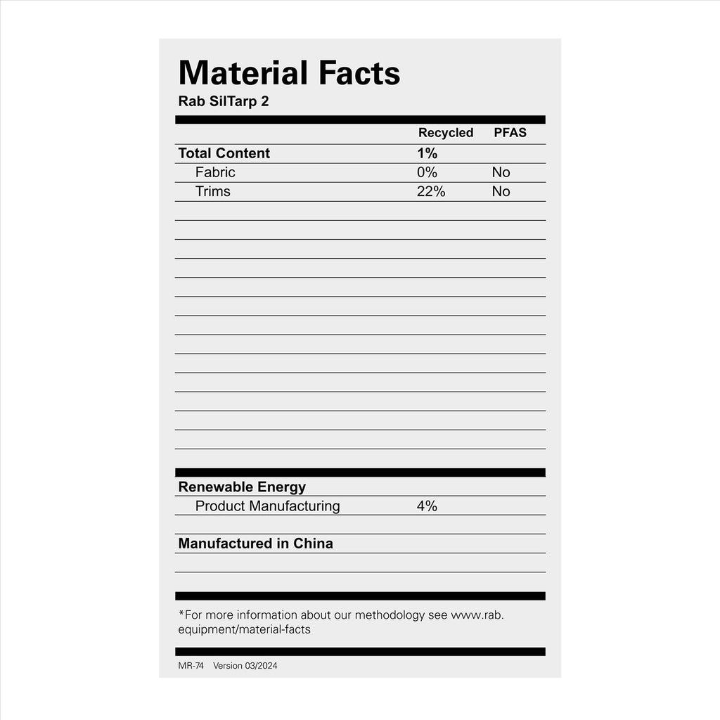 - Cordura 30D siliconised Ripstop Nylon with PU coated back (55gsm) with 2000mm HH