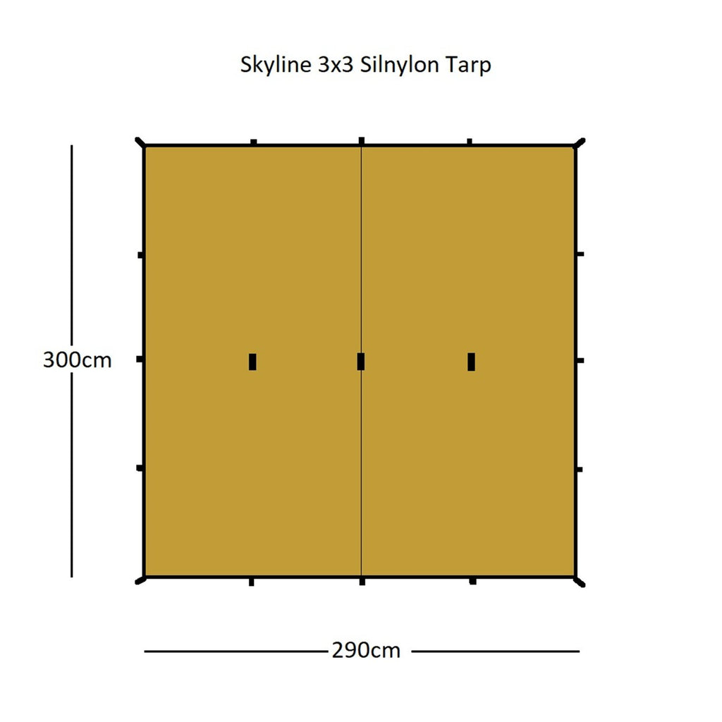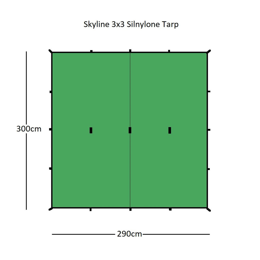 The Orson Skyline 3x3 ultralight tarp is a versatile tarp ideal for providing that extra bit of shelter. Made from strong yet lightweight 20D Ripstop Silnylon with a waterproof rating of PU3000mm with taped seams and almost 9sqm coverage. Great for hammock users, minimalist camping or those looking to provide a bit of extra shelter for the campsite.