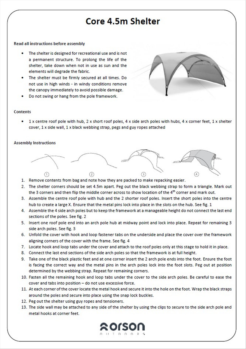 Complete the Core 4.5m Shelter with 150D Oxford Cover with a total of four sides enabling you to close off the shelter, with a fully enclosed inner room and a waterproof PE groundsheet to go under it all.