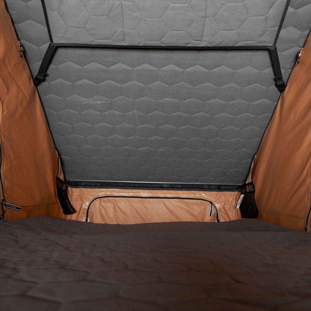 Check out Wild Land's upgraded Bush Cruiser V2, the latest in end opening hardshell rooftop tents. Designed for greater comfort, durability, and ease of use. The newest version comes with a new lifted front end allowing for extra internal room and comfort. Perfect for road trips, offroad adventures and campgrounds with a streamlined low-profile design for reduced wind resistance, and premium weatherproof materials. Available in both 120cm and 140cm widths, the Bush Cruiser V2 is quick and easy to set up, has plenty of ventilation options, and offers a comfortable and reliable shelter. Wild Land's aluminium slat frame base helps reduce weight and eliminates condensation from under the mattress.